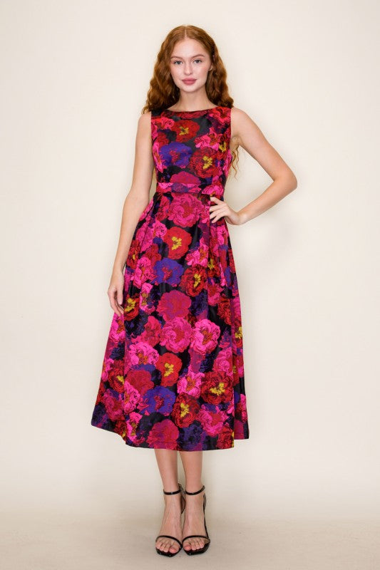 BOHO CHIC FLORAL BURNOUT FLARED MAXI SKIRT